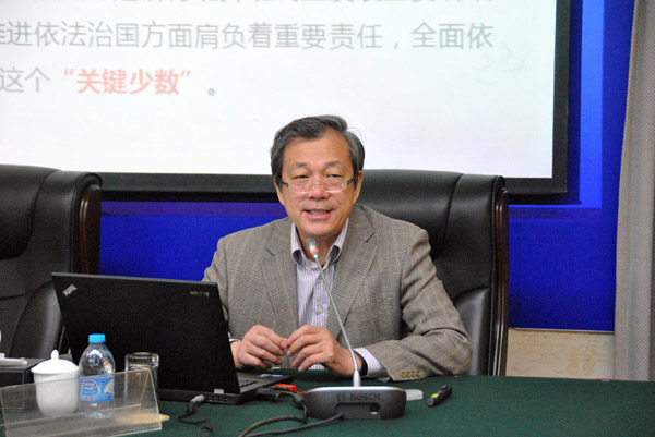 培训的第二天上午,乔延江副校长应邀到会,向老同志们宣讲了学校章程。校领导的到来再一次振奋了大家的精神,让老同志感到学校对离退休工作的重视。乔延江副校长从学校《章程》制定的背景、起草过程、主要内容和特点等方面做了全面深刻的阐述,指出学校将以《章程》作为依法自主办学、实施管理的基本准则和依据,进一步清理校内各类规章,以此推动学校各项工作,不断提高依法治校的能力和水平,全面加快我校世界一流大学的建设。