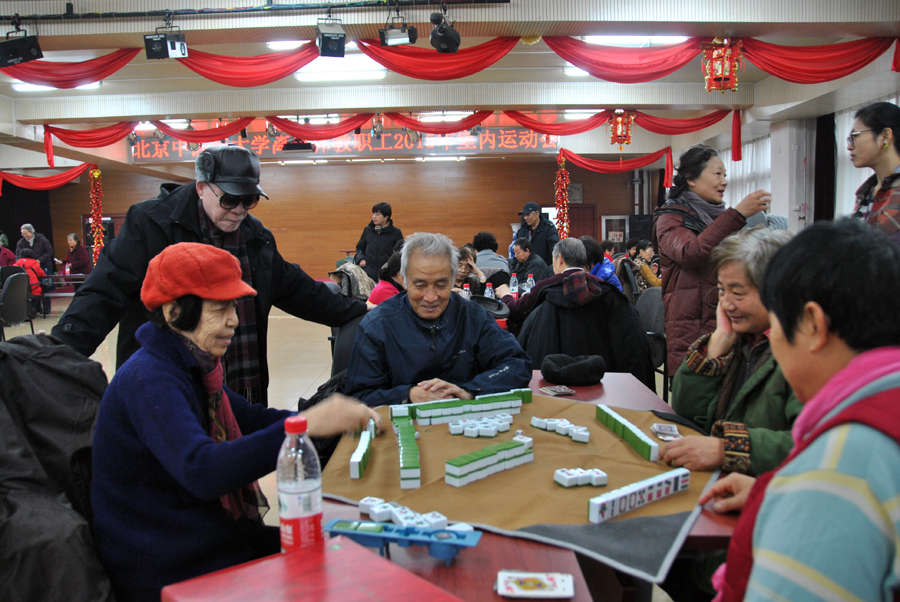 象棋比赛中,下棋方法变幻万千,而选手们亦是沉默不语,心中浮想联翩。跳棋比赛中各位选手尽展其能,兴奋处,斗志昂扬;低落时,挣扎不弃。相比于棋类比赛的激烈,扑克牌、麻将的比赛中则多了许多轻松与欢乐,老同志们无一不带着欢乐的笑脸,没有人计较输赢与得失,这种愉悦的情绪贯穿了比赛的始终。今年还新增加了羽毛球比赛,比赛异常激烈,个人循环赛上腾挪跳跃、挥舞球拍的矫健身影,男女混合双打的战术配合,都表现出老同志顽强的竞技精神和团队合作意识。