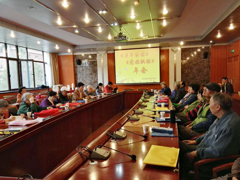 10月18日上午9点《老年家园》、《党旗飘扬》两报年会在博物馆二层圆桌会议室如期召开。参加会议的有离退休工作处处长兼党委书记张晓东,两报编委何少初、杨洋,积极支持两报的投稿老同志、离退休党支部的宣委。
