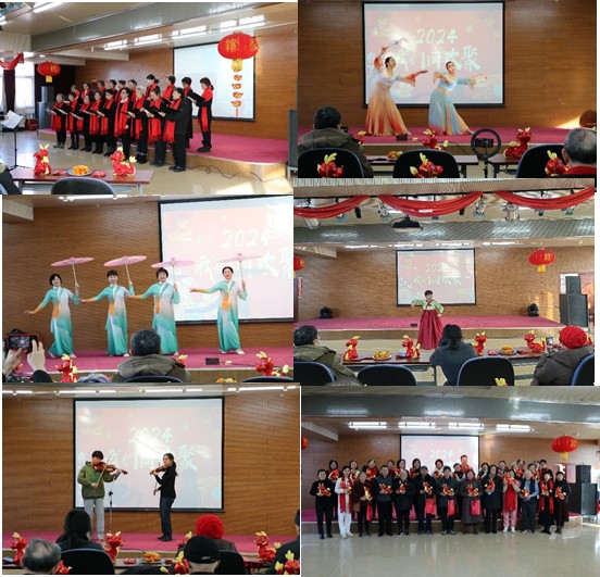 活动伊始,离退休党委、离退休工作处全体在职人员向参加活动的老师们集体拜年。随后,岐黄之声合唱团演唱的一首《不负人民》气势宏大,拉开了文艺演出的序幕,让人感受到满满的正能量;来自校艺术团舞蹈团的殷沛萱、于昕禾同学表演的双人舞《湘君湘夫人图》,展现湘水之神的曼妙身姿,带领大家领悟文徵明画笔下的古意以及屈原的浪漫幻想;韩雨洁、陈佳铌两位同学带来的《是妈妈是女儿》二重唱,表达了母女间彼此的牵挂,带给人无限感动;银俏舞蹈队表演的舞蹈《桃花源》,把观众带到春意盎然的桃花源中,如诗如画,赏心悦目;李文元、李逸博两位同学带来的小提琴、中提琴二重奏《一步之遥》,给人带来一场听觉盛宴;银俏舞蹈队刘晓兰老师表演的朝鲜族舞《欢庆》,在欢乐的旋律中感受到丰收的喜悦;岐黄之声女子同声合唱团演唱的《乘着歌声的翅膀》,给人带来无限遐想,对未来生活充满美好的向往。老师们专注地看着表演,活动现场不时传来欢笑声和阵阵掌声。