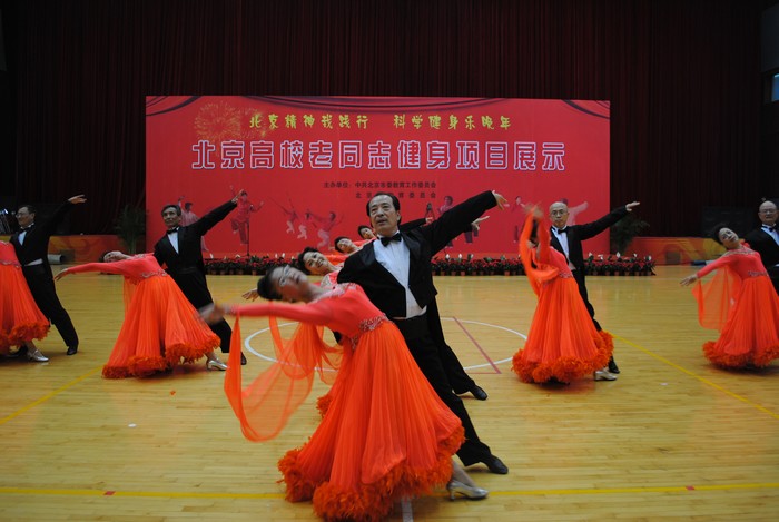 30个学校的近千名老同志表演了广播操、健身操、交谊舞、太极扇。展示活动表现了老同志的良好的精神风貌,积极乐观的心态,团结一致的集体主义精神。