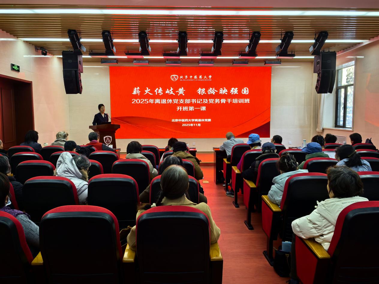 开班第一课上,丁霞副校长通过题为《深化综合改革 聚焦三年行动 加速推进中医药特色世界一流大学建设》的专题报告,向离退休教职工代表通报了学校综合改革部署和教育强国建设三年行动计划的推进情况。报告从背景与使命、目标与举措、任务与进展三个维度展开,系统阐述了学校以“教育强校、科技强校、人才强校”为核心的发展路径,全面解读了“38313” 计划的核心要义。她强调,全面深化综合改革须紧扣六个关键着力点,即契合社会现实需求,转化培养模式;提升竞争力影响力,拓展发展空间;推动科研提质增效,加速成果转化;增强原创理论贡献,彰显特色优势;强化社会服务效能,突破现有局限;凝聚共识汇聚合力,实现一流目标,全面深化综合改革,积极探索创新中医药特色世界一流大学的发展道路。她指出,在学校党委的坚强领导下,齐心协力扛牢新时代中医药高等教育国家队、排头兵的使命,奋力书写“强国建设、北中医何为”精彩答卷,不仅需要全体在职教职员工的拼搏奉献,更离不开各位老同志的关心支持和智慧引领。她希望老同志充分发挥阅历优势、专业专长,与学校育人工作精准对接、深度融合,做“红色岐黄”的引路人,在思政引领中筑牢强国根基;做“教学质量”的守护者,在薪火相传中夯实育人根本;做“岐黄新人”的培育者,在传帮带中锻造专业梯队;做“中医药文化”的传播者,在守正创新中擦亮文化名片;聚力打造 “银龄 + 岐黄” 特色鲜明、内涵深厚的北中医 “银龄行动” 党建育人品牌。