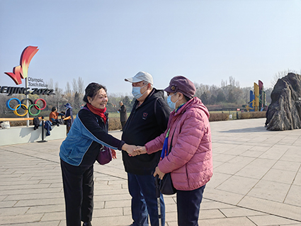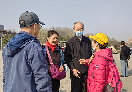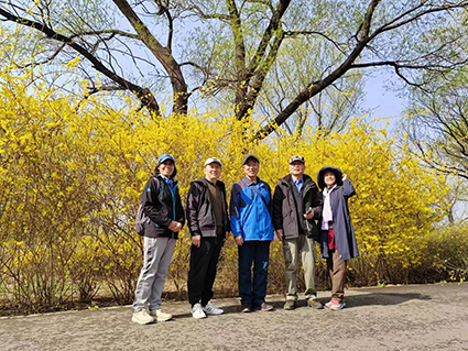 好久未见的老同志们见面后亲切拥抱、拉着手互致问候,大家在奥森南门争相合影留念,留下美好的回忆。随后,兴高采烈、精神矍铄的老同志们三五结伴同行。三月的奥森公园,草长莺飞,春意盎然,行走在奥森公园健步道上,老同志们的身心在优美闲适的环境中得到充分放松。