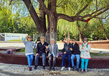 大运河森林公园位于北京市通州区新城北运河两侧,河道全长约8.6千米,总建设面积713.33公顷,构建了“一河、两岸、六园、十八景”的整体布局。公园有“通州第一党支部雕塑”,以纪念雕塑的形式展现革命先烈的光辉形象,激励人们继承光荣传统,弘扬革命精神。金秋时节的大运河森林公园景色更加绚丽迷人,老同志们漫步沿河步道,领略千年运河文化内涵,登上观景台,感受北京通州副中心的新变化和大运河生态文明建设成果。他们互致问候,欢声笑语,其乐融融,一路留下爽朗的笑声、矍铄的身影,在轻松融洽的氛围中沟通交流、互相鼓励,共享新时代新发展带来的幸福生活。