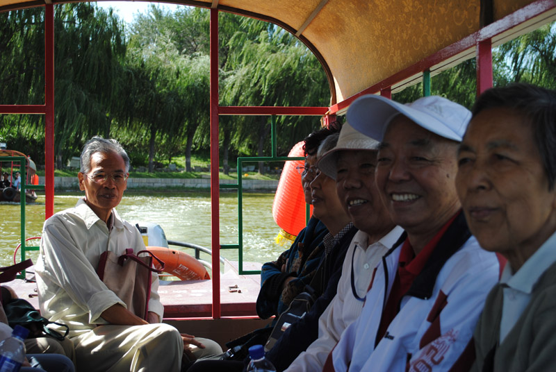一路欢歌笑语,蓝天白云,空气清新的可以看见远山。大家热情高涨,乘船感受圆明园的变化。圆明园在历史上就是一座水系相连的大型皇家园林,其陆上建筑面积和故宫一样大,水域面积又等于一个颐和园。水上泛舟,大家仿佛置身于江南水乡。放眼望去,满眼的荷叶,不禁使人感觉正置身于朱自清《荷塘月色》的美景之中。