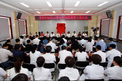 揭牌仪式后,房山医院相继召开了医院领导干部大会和医院工作会,在领导干部大会上,徐安龙校长鼓励全院职工要有“高眼界、大格局”,以北中医视野为医院谋篇布局。谷晓红书记要求医院要坚持社会主义办学、办院宗旨,认真学习贯彻习近平新时代中国特色社会主义思想。抓好领导班子建设,全面从严治党。坚持立德树人,干部职工要具有良好师德和医德;要建设好管理干部队伍、专业技术队伍和后勤服务队伍。在医院工作会上,校院进行了深入交流。
